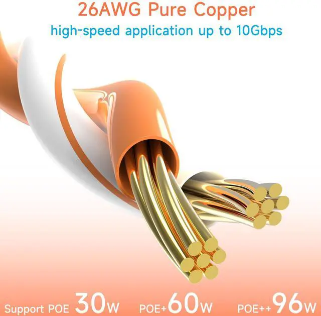 26AWG pure copper patch cable is thinner than 24AWG cable, which does help in space-saving, airflow optimization and more, and keep same 10G performance in data transfer for short length use.