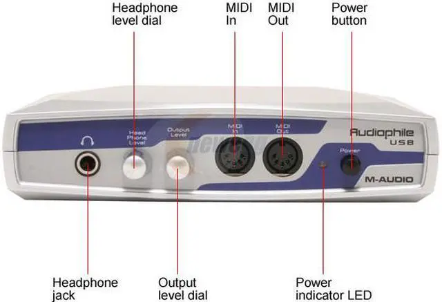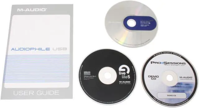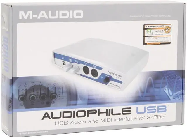 | Package Contents | M-AUDIO Audiophile USB Audio-MIDI Interface User Manual Driver Disks Power Adapter USB Cable |