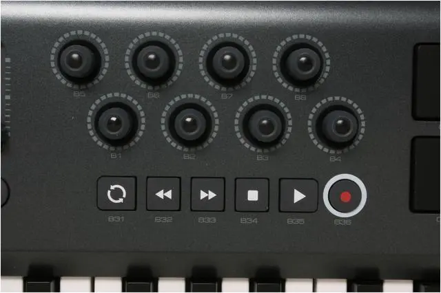 | Features | 49-key velocity-sensitive semi-weighted action keyboard with assignable aftertouch 8 MIDI-assignable trigger pads 8 MIDI-assignable rotary encoder knobs 9 MIDI-assignable sliders 15 assignable buttons, including 6 transport buttons assignable pitch bend and modulation wheels octave up/down; transpose up/down 4 independent configurable keyboard zones 15 buttons and backlit LCD screen for total front-panel programming sustain and expression pedal jacks built-in USB MIDI interface including standard MIDI In and Out jacks powered via USB or optional power supply class-compliant with Windows XP and Mac OS X 20 non-volatile memory locations memory dump via Sys Ex compatible with free Enigma librarian/editor for storing and organizing setups all controllers fully programmable to MIDI controller number and channel Controller Mute function mutes controller output to avoid parameter jumps Snapshot function transmits all current controller settings on/off rocker switch includes Ableton Live Lite 4 music production software so you can make music right away |