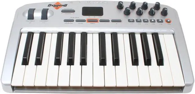 | Features | total control of MIDI systems/software 25 full-sized keys (+/- 5 octaves) 8 MIDI-assignable control knobs powered via USB, batteries or AC only 4 lbs—fits in Studio Pack, Oxygen Tank or 19” rack includes Ableton Live Lite 4 music production software, so you can make music right away |