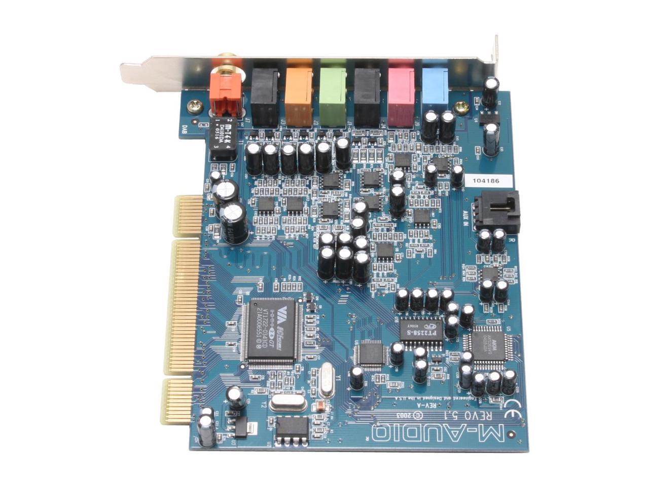 Step up from your motherboard's integrated audio solution and surround yourself with sound with the Revolution 5.1 from M-Audio, one of the leaders in professional computer audio solutions. The easy-to-install PCI card works with Windows and Mac desktops. Six analog outputs provide full high-definition 24-bit/192kHz audio playback on up to eight channels transmitting analog audio as a digital signal (PCM). A coaxial digital out adds pass-through of Dolby Digital and DTS with decoding using third-party applications.