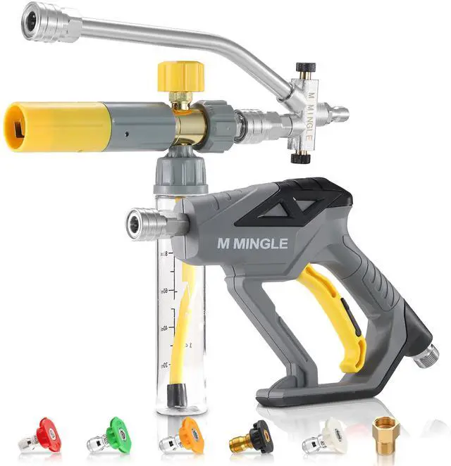 Pressure Washer Gun with Mini Foam Cannon, Dual Connector Accessory, Undiluted Foam Blaster with 5 Nozzle Tips, 1/4" Quick Connect for Car Wash, Patio, Deck Cleaning
