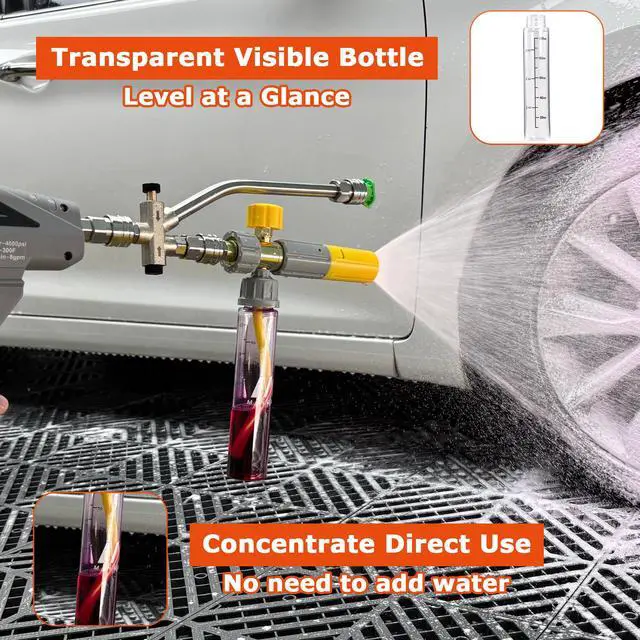 • High-efficiency Foaming without Dilution: No need to dilute the car wash soap with water in advance. You can directly pour the car wash liquid into pressure washer foam cannon bottle, eliminating the steps of adding water and mixing, thus saving operation time.