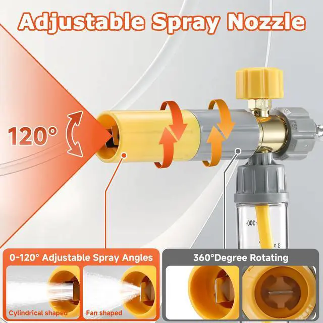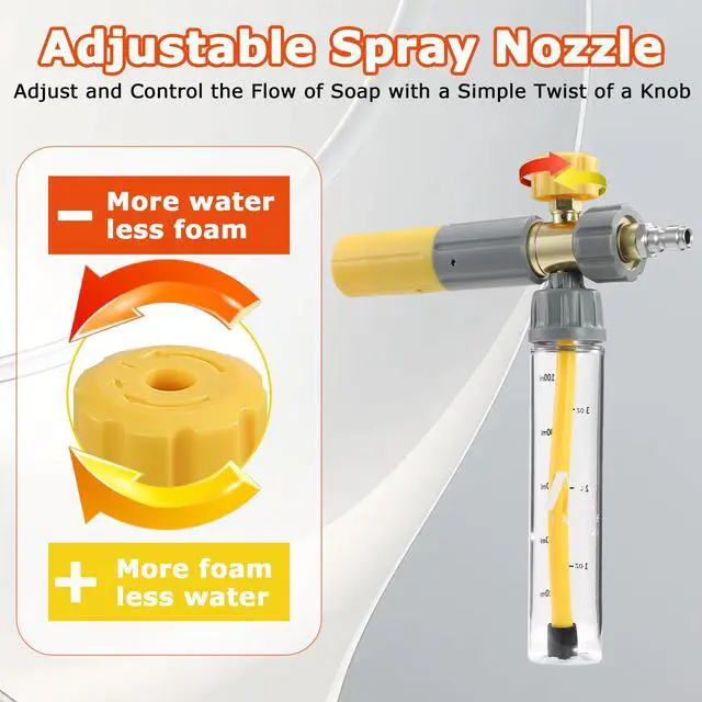 • Foam Cannon Dual-purpose Switch Spray Gun: Unique dual-head connector with a two-way valve, allowing for easy switching between foam and water flow modes without the need to constantly change nozzles, saving you time and effort.