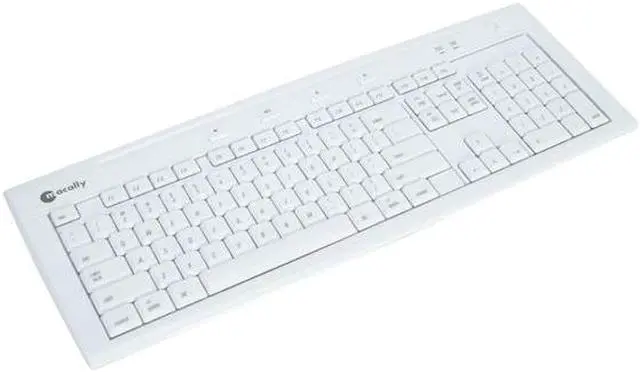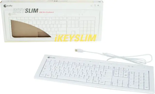 Macally iKeySlim is a stylish and clean white slim keyboard. Enhanced low profile keycaps reduces key stroke travel distances and eases pressure on your finger tips.