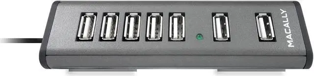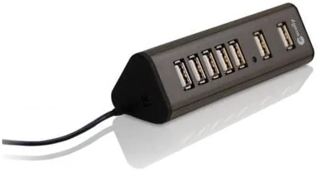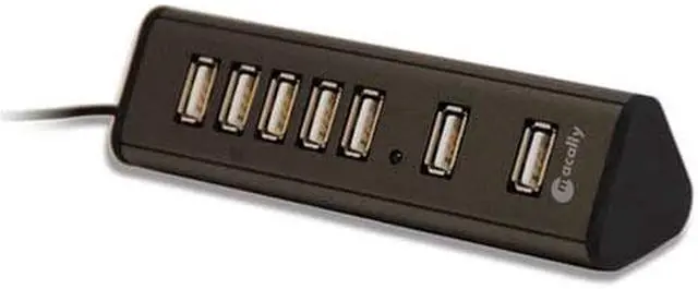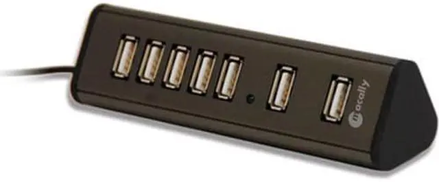 Mac OS X 10.2 to 10.5 and above. Windows 2000/XP/Vista and above. Any desktop and notebook computer with an available USB port. Compact for mobile users. 7 USB ports. 2 separated ports for larger size USB devices. DC jack for AC adaptor (included). Adhesive pads secure TriHub to desired surface.