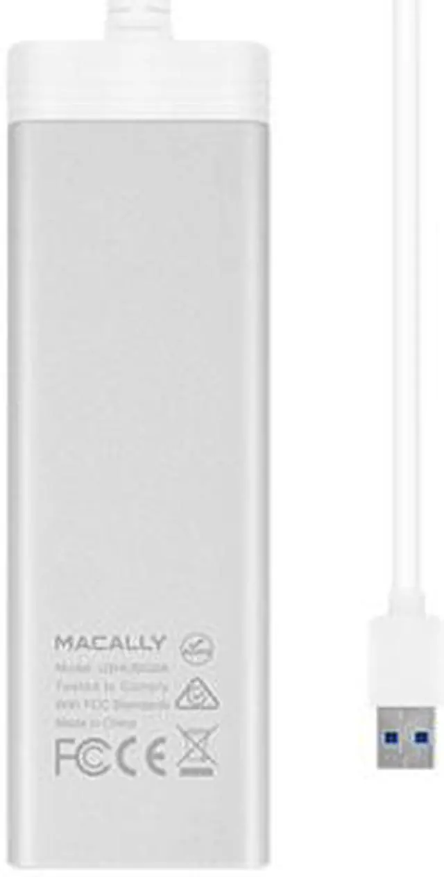 The Macally U3HUBGBA adds 3 SuperSpeed USB 3.0 ports and one Gigabit Ethernet port to your computer. This hub allows you to connect 3 extra USB devices to your computer. Especially high-bandwith devices such as external hard disk drives and flash drives will benefit from the up to 5 Gbps that offers SuperSpeed USB 3.0. SuperSpeed USB 3.0 is 10 times faster than USB 2.0 and backwards compatible with USB 2.0 and USB 1.1. The Macally U3HUBGBA also allows you to connect your computer to a Gigabit Ethernet network with connection speeds at 10/100/1000Mbps. The U3HUBGBA is compact in size and has a built-in cable for maximum portability.Host Interface: USBTotal Number of USB Ports: 3Number of USB 3.0 Ports: 3Number of Network (RJ-45) Ports: 1Form Factor: ExternalPackage Contents: 3 Port USB 3.0 Hub with Gigabit Ethernet Adapter User Guide Green Compliant: YesGreen Compliance Certificate/Authority: WEEECountry of Origin: ChinaPackage Contents 3 Port USB 3.0 Hub with Gigabit Ethernet Adapter User Guide