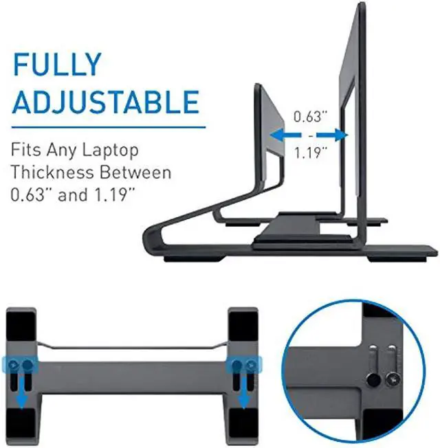 Easily adjustable with included screwdriver- fits any laptop with a thickness between .63- to 1.19- (1.6 cm to 3 cm)