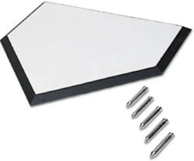 The Official Regulation sized home plate for baseball and softball is Manufactured to the highest quality available! Made from solid rubber, and along the edges is a black beveled edges to ensure everyone "comes home" safely.Now so that the plate does not have a chance to move away from the original position, on the bottom are re-enforced molds to insert 5 x 4" metal spikes that go into the ground. This plate will do you justice!