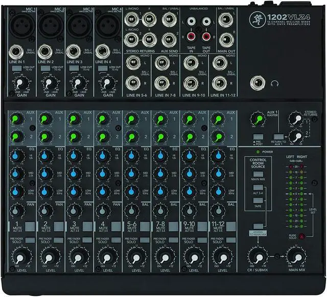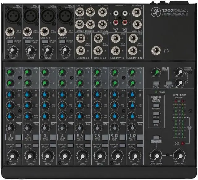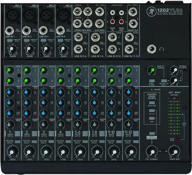 In summary, the Mackie 1202VLZ4 12-Channel Compact Analog Mixer is a reliable, durable, and high-quality audio mixing solution that offers professional-grade performance in a compact, rack-mountable design. Whether you're setting up for a live performance or working in a recording studio, the 1202VLZ4 is designed to deliver outstanding audio quality and versatility.
