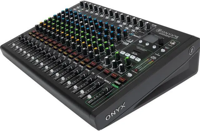A professional-grade solution for audio mixing and recording, the Mackie Onyx16 16-Channel Premium Analog Mixer with Multi-Track USB is designed to deliver superior sound quality and versatility. This high-performance mixer is equipped with 24-Bit / 96kHz multitrack recording capabilities, high-gain Onyx mic preamps, and an ultra-low-noise design, ensuring pristine audio fidelity for live performances, home recording, and content creation. The Onyx16 mixer boasts a robust suite of features, including powerful DSP effects, British-style Perkins EQ, and a full-color display for easy navigation. Integrated recording and playback from an SD card offer flexibility and convenience, allowing you to capture your best performances wherever you are.