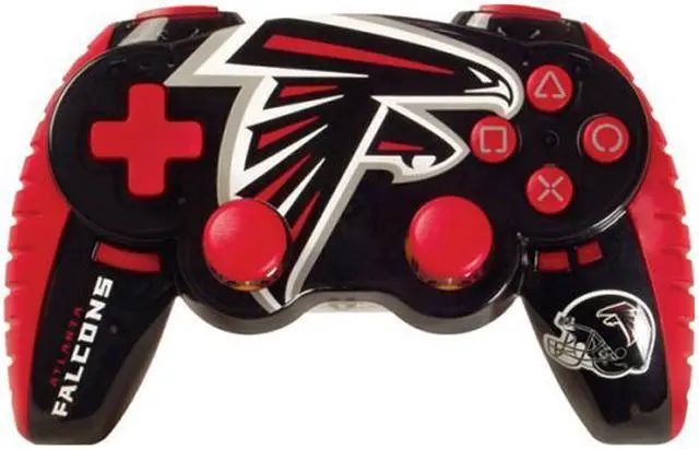 The Atlanta Falcons logo is displayed prominently on the controller which is molded in black and red with the signature Madcatz polycarbonate impact-resistant finish.