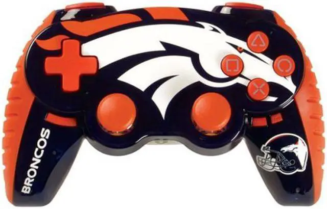 The Denver Bronco’s stallion is emblazoned across the controller in white, while the controller body is molded in dark blue and orange with the signature Madcatz polycarbonate impact-resistant finish.