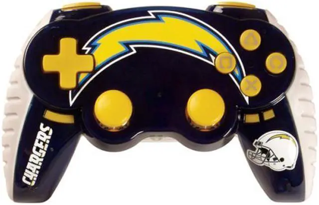 The San Diego Chargers lightning bolt arcs across the controller which is molded in blue, white and yellow with the signature Madcatz polycarbonate impact-resistant finish.