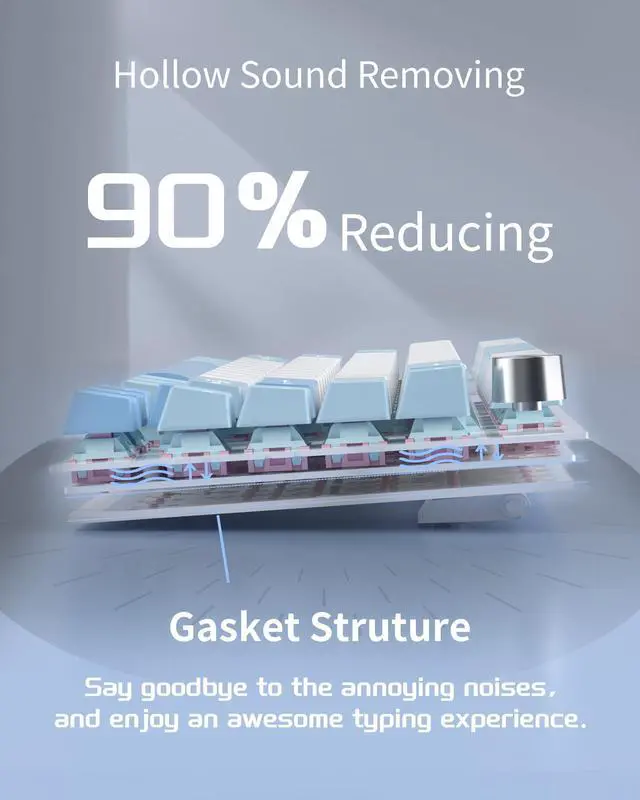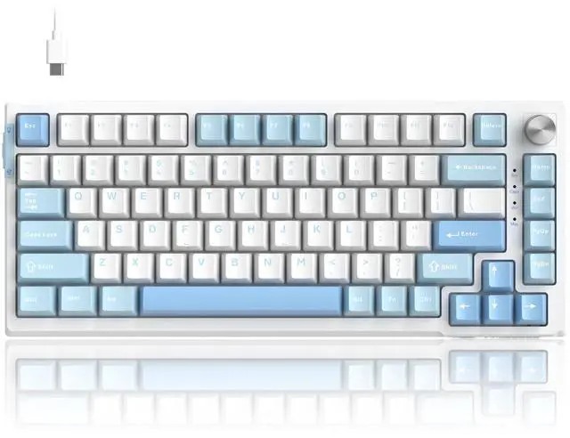 MageGee SKY81 75% Mechanical Gaming Keyboard, Hot Swappable Wired Custom Creamy Keyboards with 5-Layer Sound Dampening, Knob Control, RGB Backlit, NKRO for Win/Mac (Ice Sea Blue, Pink Bear Switch)