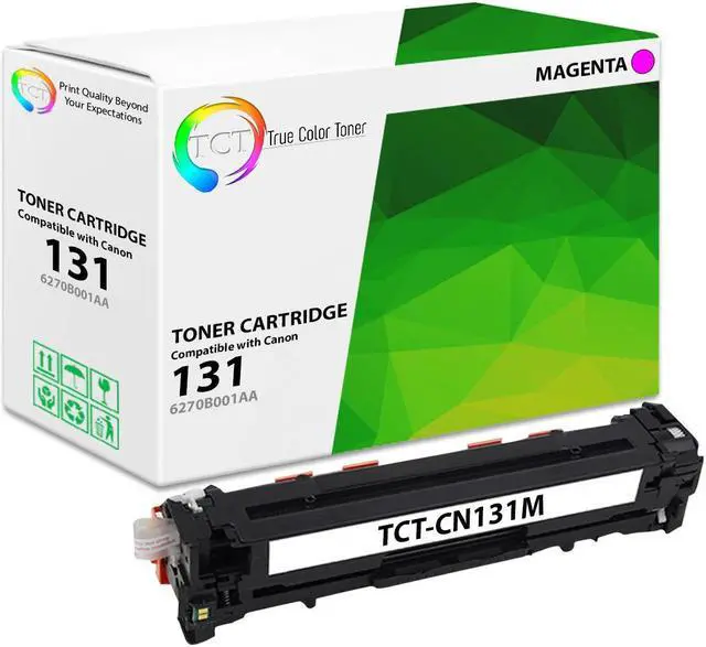 TCT offers quality Canon 131 6270B001AA compatible replacement cartridges that fit effortlessly into your printer. You will find crisp, clear prints with consistently dark tones and sharp images in every single print job. Get professional quality prints every time and save a bundle with True Color Toners high quality printing supplies!