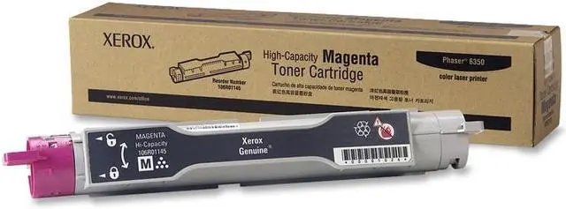 Toner cartridge is designed for use with Xerox Phaser 6350. Cartridge yields approximately 10,000 pages.