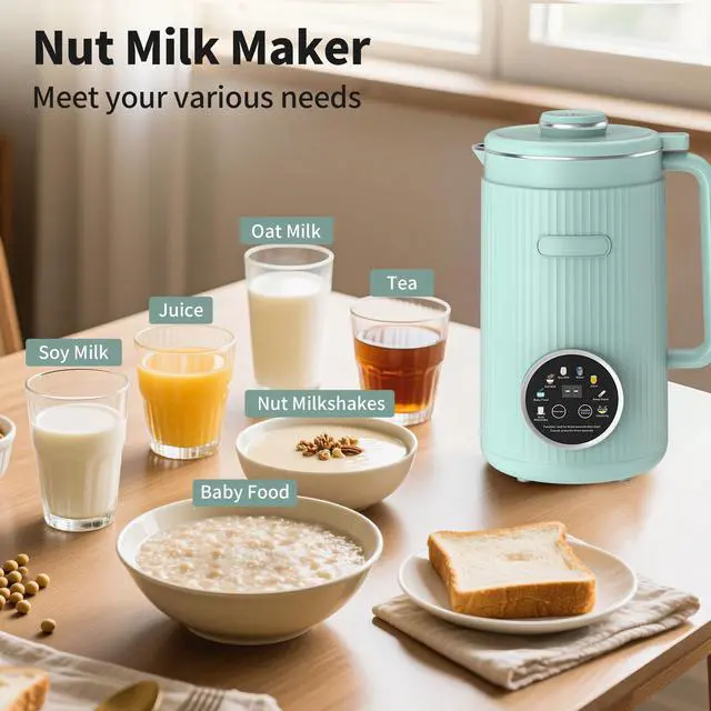 Without the need for pre-soaking, this nut milk maker can easily make nut milk, soy milk, milkshakes, oat milk, rice paste, tea, boil water, squeeze fruit juice, etc., meeting various needs.