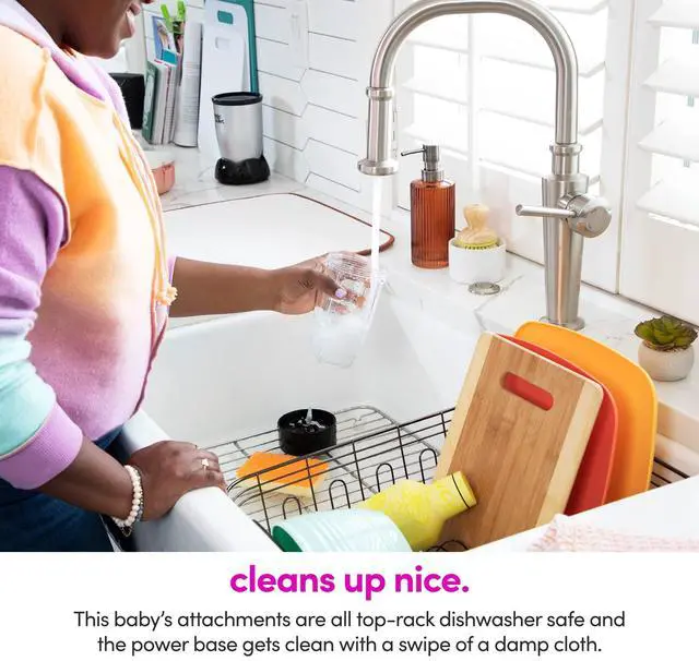 This baby’s attachments are all top-rack dishwasher-safe and the power base gets clean with a swipe of a damp cloth.