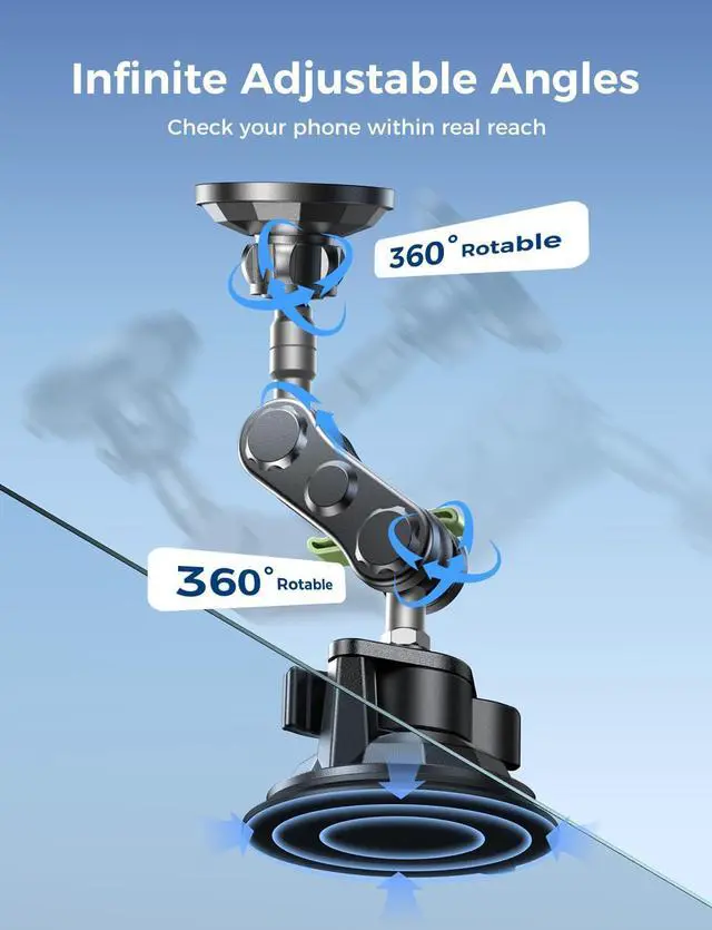Magnetic Car Phone Holder [Strong Suction&Strong Magnetic] 360° Adjustable Car Phone Mount for Windshield, Ultra-Durable Metal, Suction Cup Car Phone Mount for iPhone Samsung All Smartphone