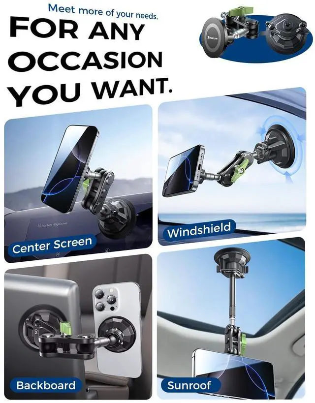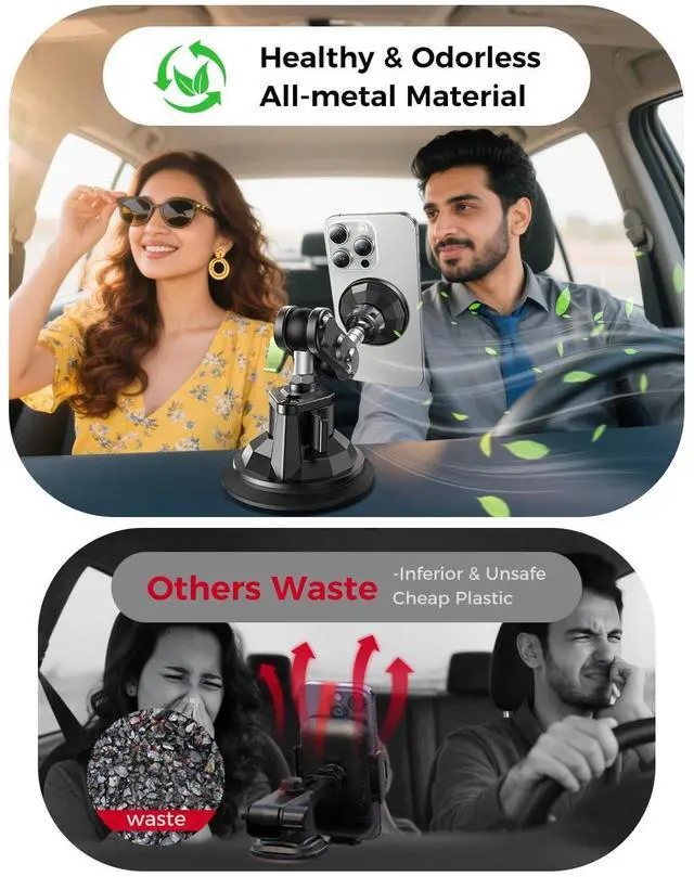 [Strong Magnetic Car Mount] Our super-strong magnetism is powerful enough to hold 12 units for iPhone 16 Pro Max. This powerful magsafe car phone mount can create a powerful attraction that firmly supports your device while allowing you to drive without distraction. it easily and securely holds your phone through bumps, sharp turns or even sudden stops, no worrying of dropping your phone.