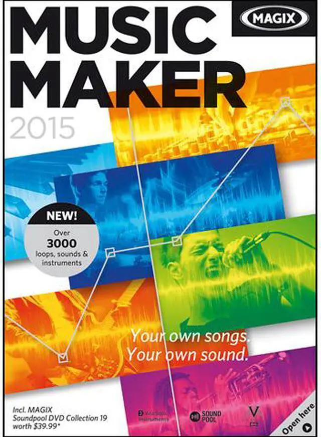 Effortlessly make professional sounds with MAGIX Music Maker 2015! With thousands of loops and samples, virtual instruments, various professional studio effects, and easy-to-use tools, it allows you to make your own songs in no time at all, and with no previous knowledge. Want to have more fun? You can also use it to create your own music video. Then, directly upload it online to share with the world!