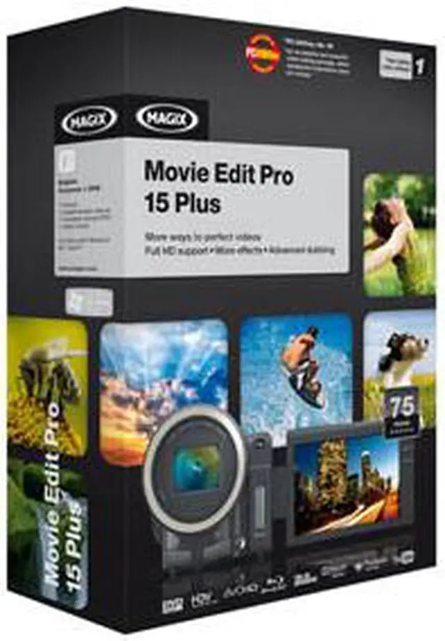 | Feature | Movie Edit Pro 15 Plus has impressive functions for even better videos. Included are extensive video editing functions for users with advanced demands. Get professional results with many innovative functions, effects, templates and extra tools. Professional video editing: 67 additional tracks, 3D design, individual effects automation, virtual dub interface, TV ad remover, more effects, sounds, styles, menus, and more. High-end dubbing: 5.1 multi-channel Surround sound with Dolby Digital 5.1 Creator, Audio Mastering Suite, beat recognition, synthesizers, Music Editor, and much more. Cover & label printing (Print Center) plus MAGIX Xtreme Photo Designer 6: Extensive image editing options. |
