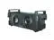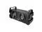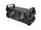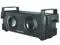 - The speaker is a classic sized boom box with large handles, enabling easy carrying and portable use.