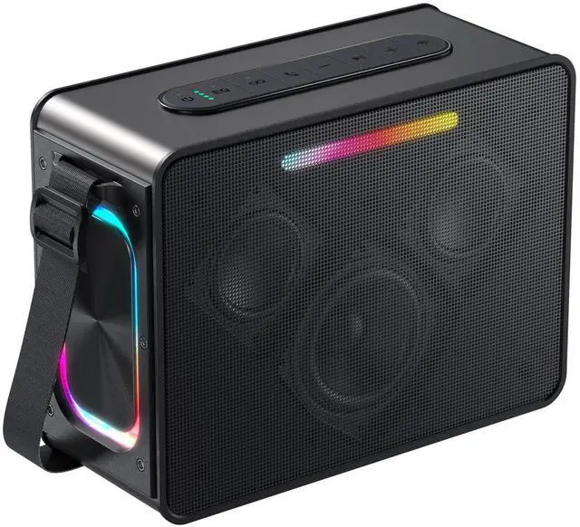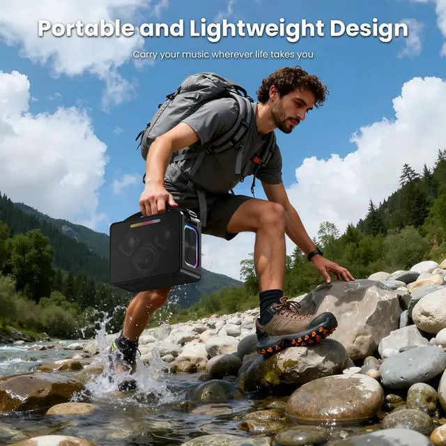 [100W Powerful Bluetooth Speaker] This powerful portable Bluetooth speaker is equipped with a sound system featuring three unit speakers (one tweeter and two woofers) that can deliver a peak output of 100W. It utilizes dual diaphragms and woofer technology to improve crisper sound quality. The dual woofer units allow you to experience the bass fun of every song and bring the ultimate auditory experience. The tweeter can penetrate most noise, allowing you to enjoy a vivid, powerful, natural, and authentic auditory experience even in a noisy environment. It's perfectly suited for music aficionados.