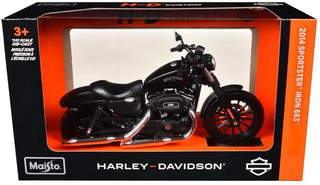 Brand new 1/12 scale diecast motorcycle model of 2014 Harley Davidson Sportster Iron 883 die cast motorcycle model by Maisto.