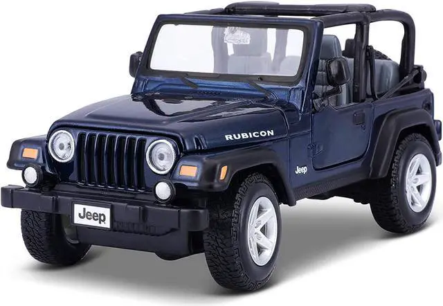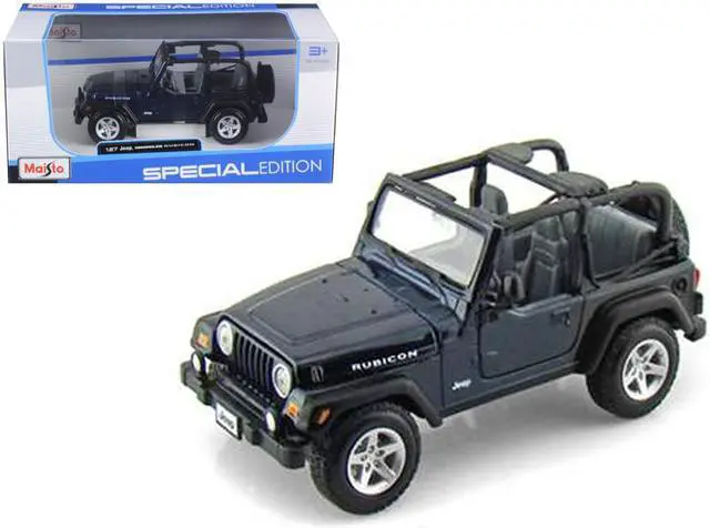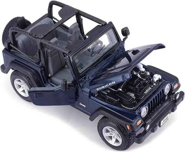 Brand new 1/27 scale diecast car model of Jeep Wrangler Rubicon Dark Blue die cast model car by Maisto.
