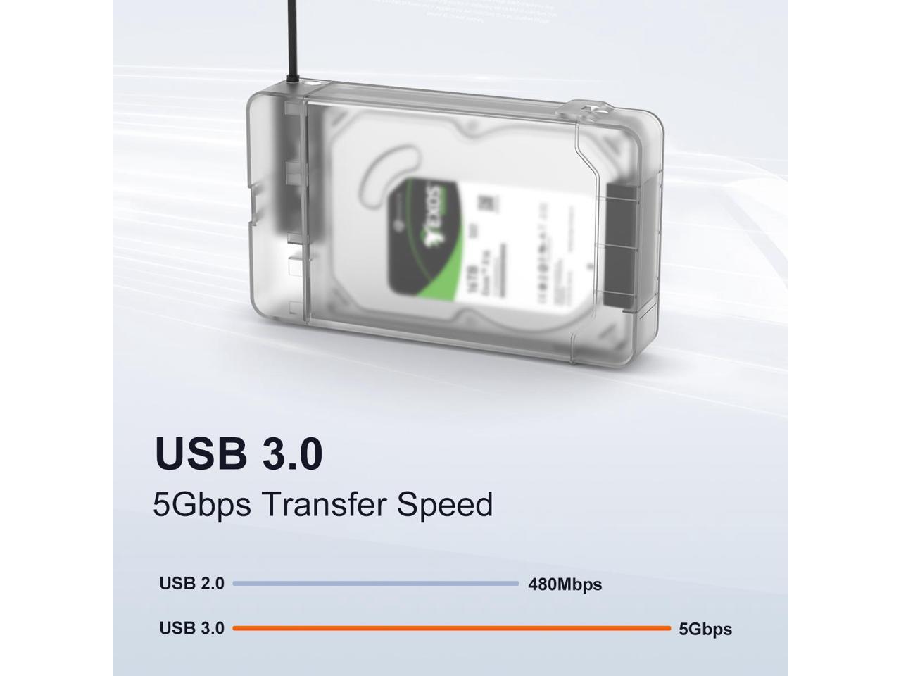 - Super Speed USB 3.0 with UASP: The SATA interface of the 2.5/ 3.5" HDD enclosure supports UASP SATA III transmission protocol, the maximum data transfer rate of the USB 3.0 interface is 5Gbps.