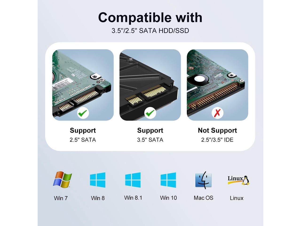 - Wide Compatibility: the SATA hard drive enclosure is compatible with Windows, LINUX and Mac OS or above systems.