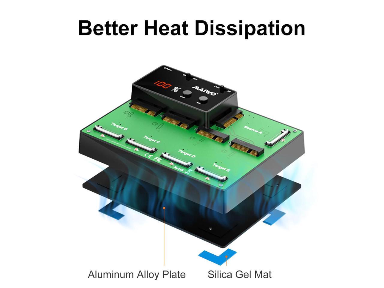 - The mSATA SSD duplicator adopts flat-type heat dissipation. Base bottom adopts steel plate, helps dissipate heat from the motherboard, good thermal conductivity.