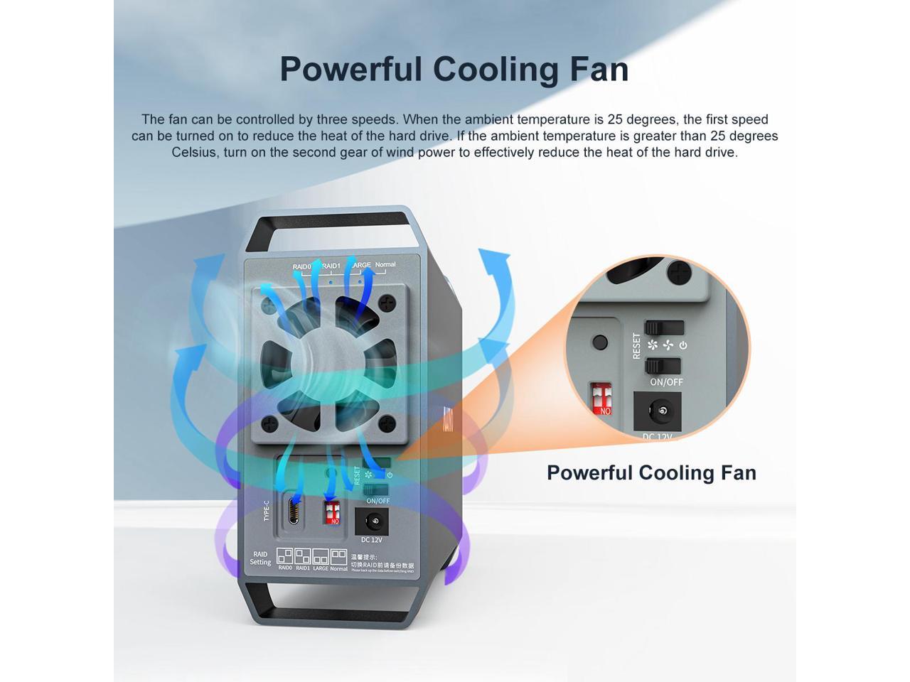 - Fast Heat Dssipation System with Fan: The 3.5 SATA HDD enclosure with fast heat dssipation performance thanks to aluminum alloy and built-in fan, combined into a system that dissipates heat from the inside to out.