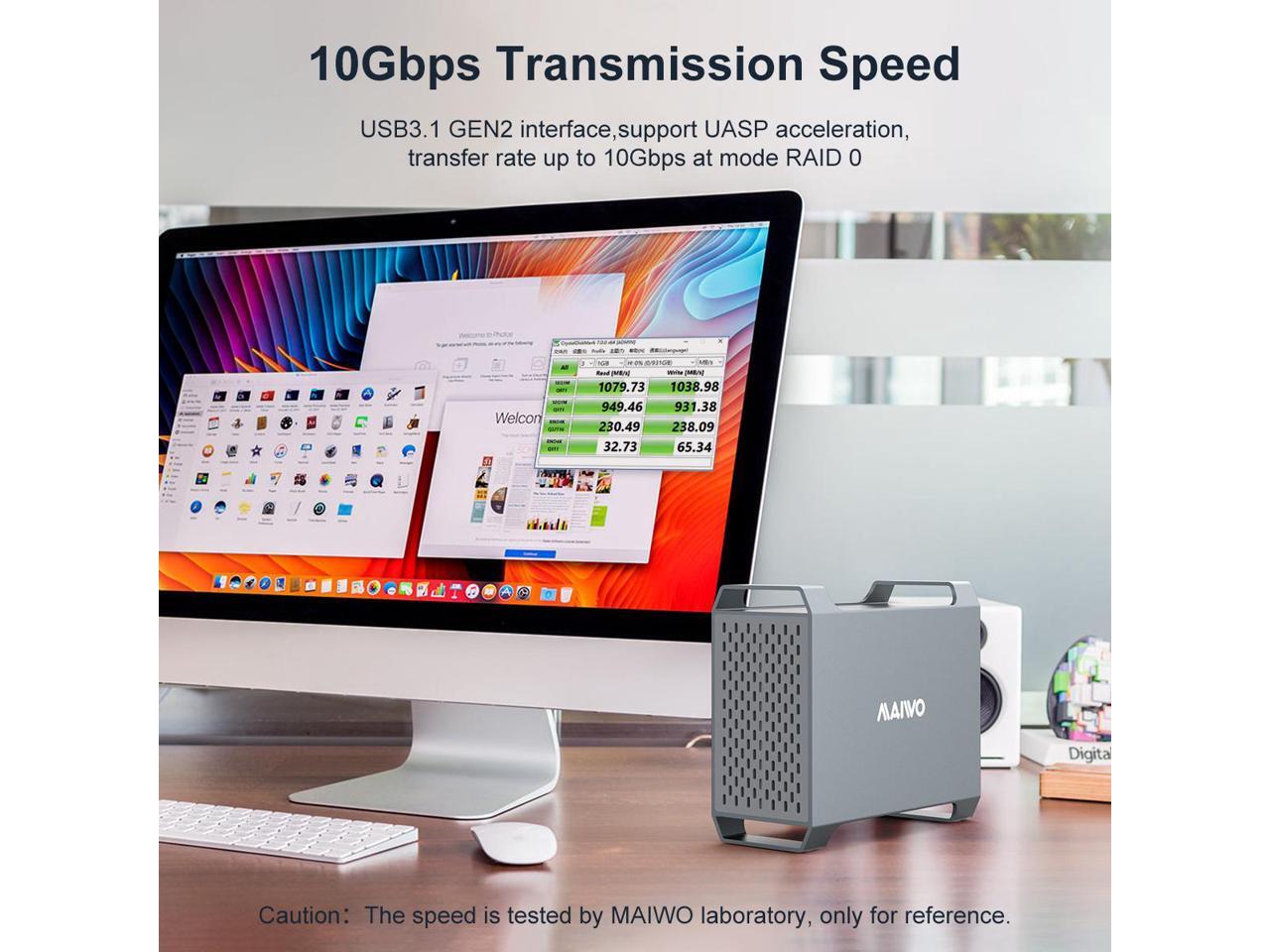 - USB3.1 Transfer Speed up to 10Gbps: This dual bay hdd enclosure supports USB3.1 to SATA dual high-speed transmission, support UASP acceleration protocol. Packed with C to C and C to A cable.