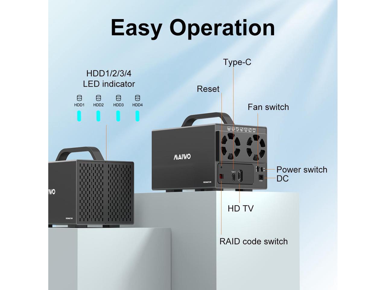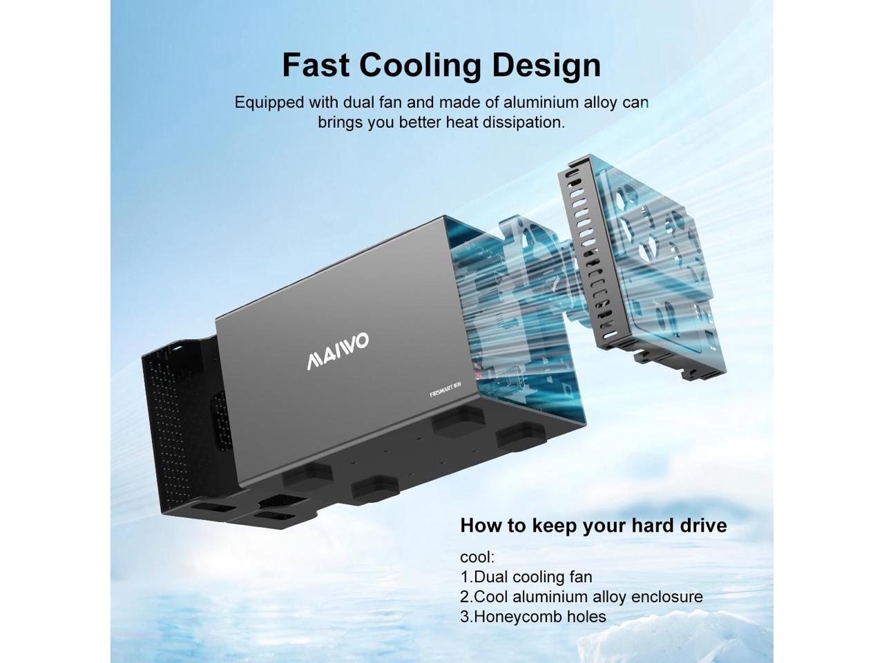 MAIWO 4 Bay RAID Enclosure for 3.5 inch SATA Hard Drive with Two Fans, Support UASP 4K HDTV, 64TB USB3.1 Type-C 5Gbps Speed, RAID 0/1/3/5/10 Clone Large Normal