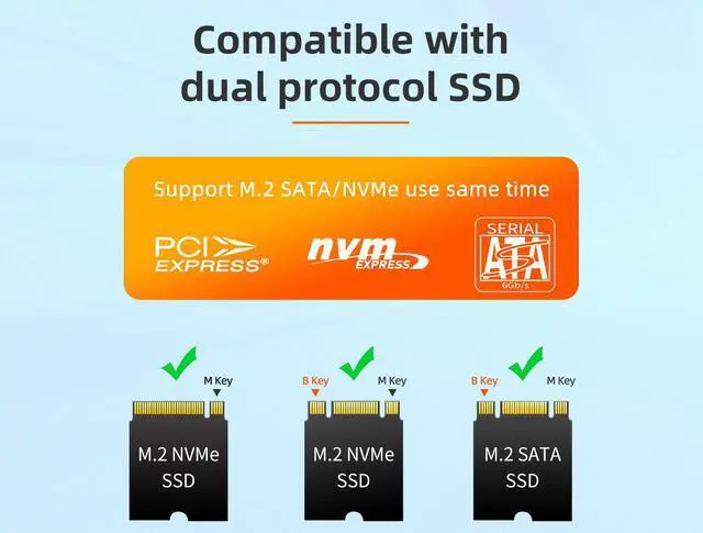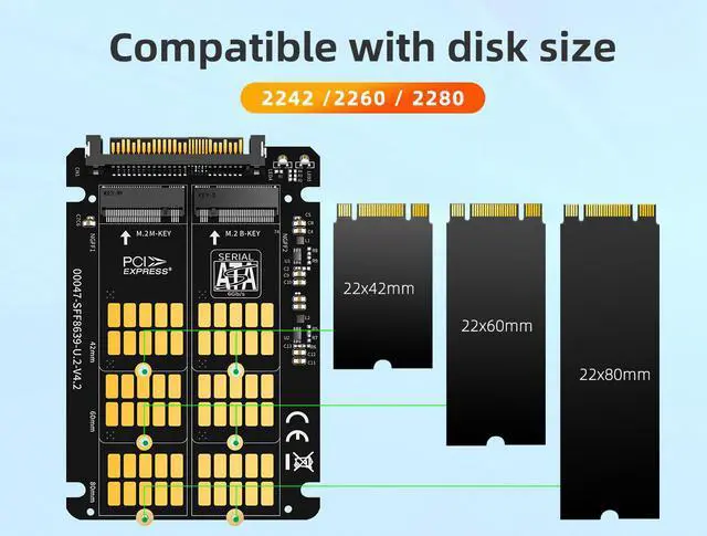 - Support M.2 B+M key SATA SSD 2242,2260,2280
