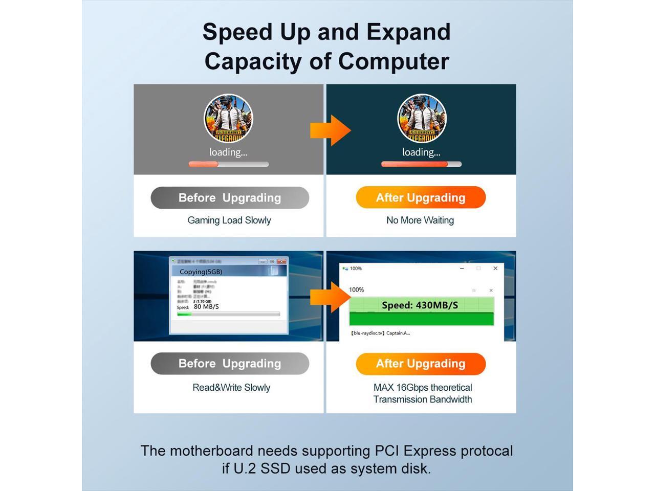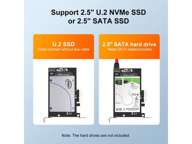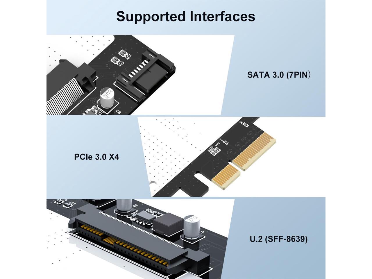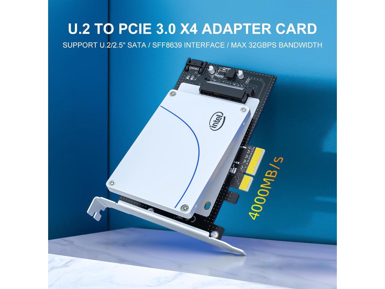 - U.2 to PCIe Adapter: Extending an U.2 (SFF-8639) Interface on your desktop or server for 2.5" U.2 NVMe SSD, or you may need install an 2.5" SATA SSD to original SATA 3 Port sometime. This U.2 to PCIe 3.0 x4 Adapter meets both of your requirement