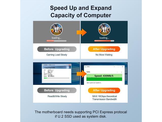 - Easy to install: Mount your PCIe U.2 NVMe SSD directly onto the adapter by SFF-8639 slot, and then plug the adapter in your server or the computer motherboard.