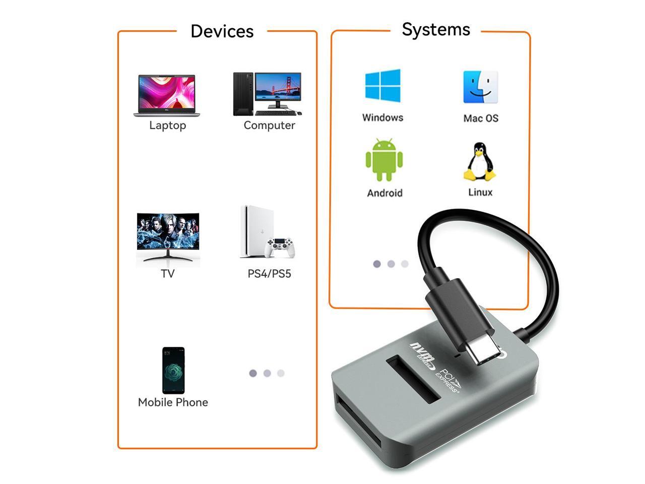 - Universal Compatibility: Compatible with M.2 NVMe SSDs in sizes 2230, 2242, 2260, 2280, and 22110, ensuring versatility for various storage needs.