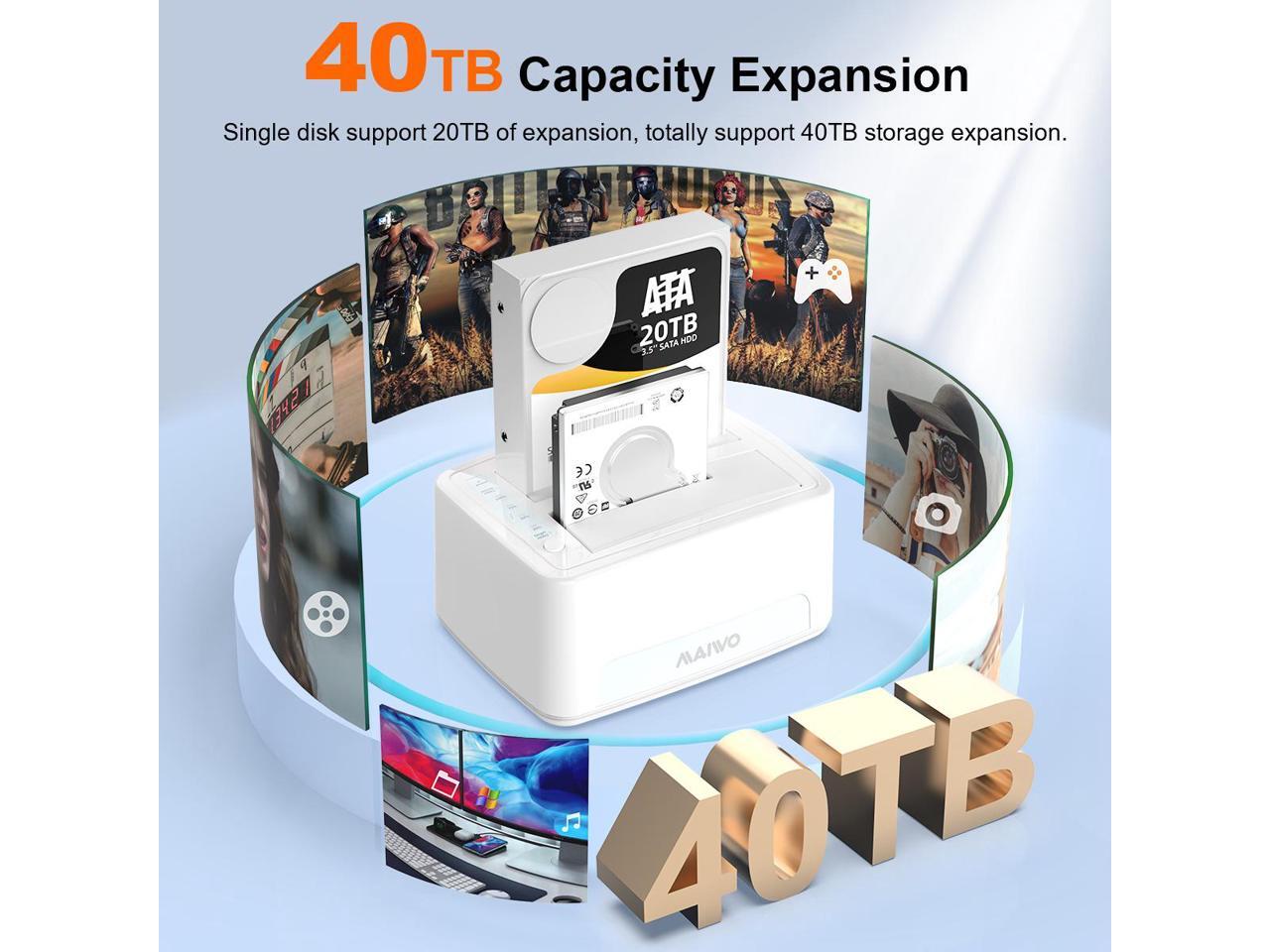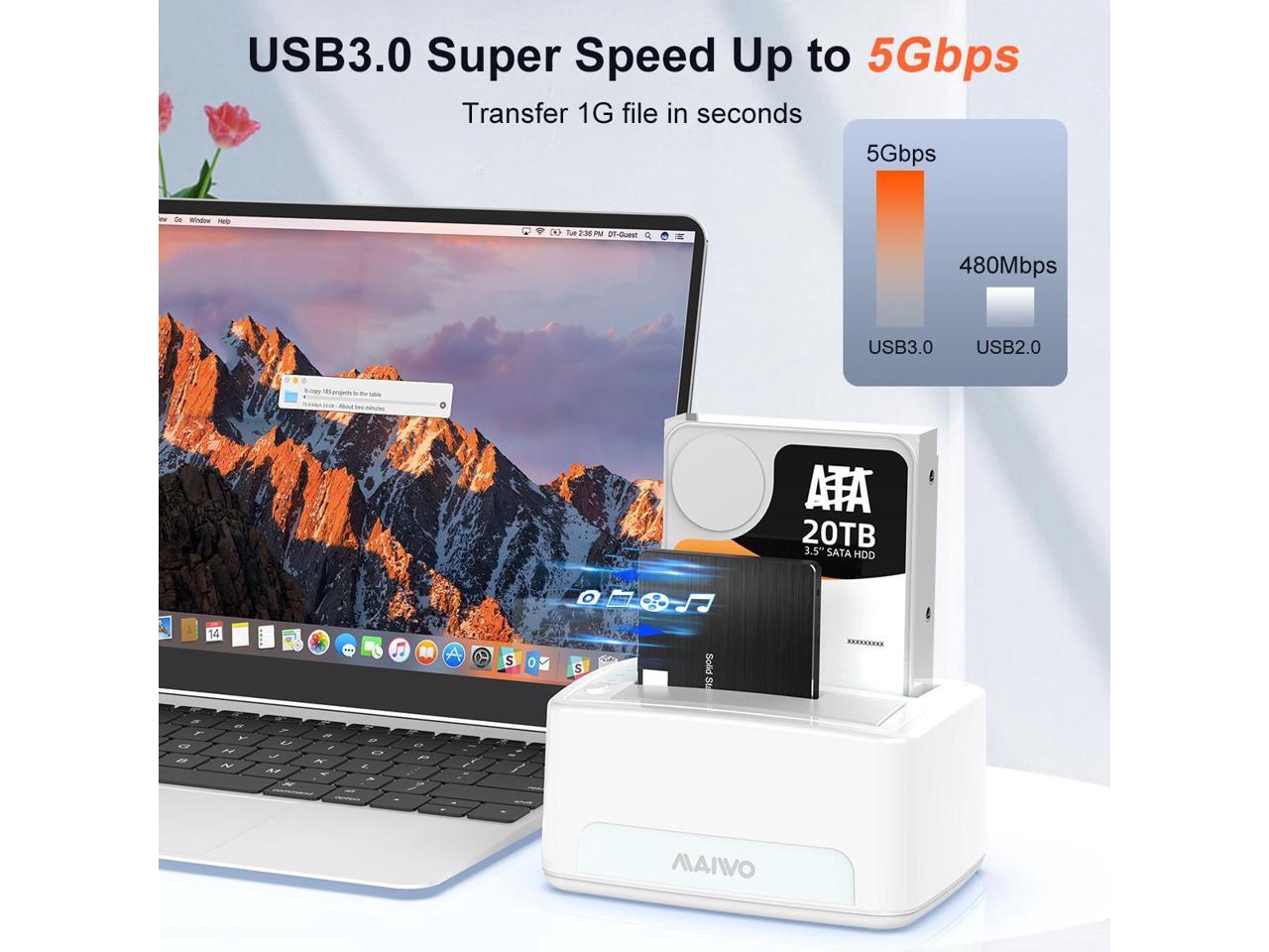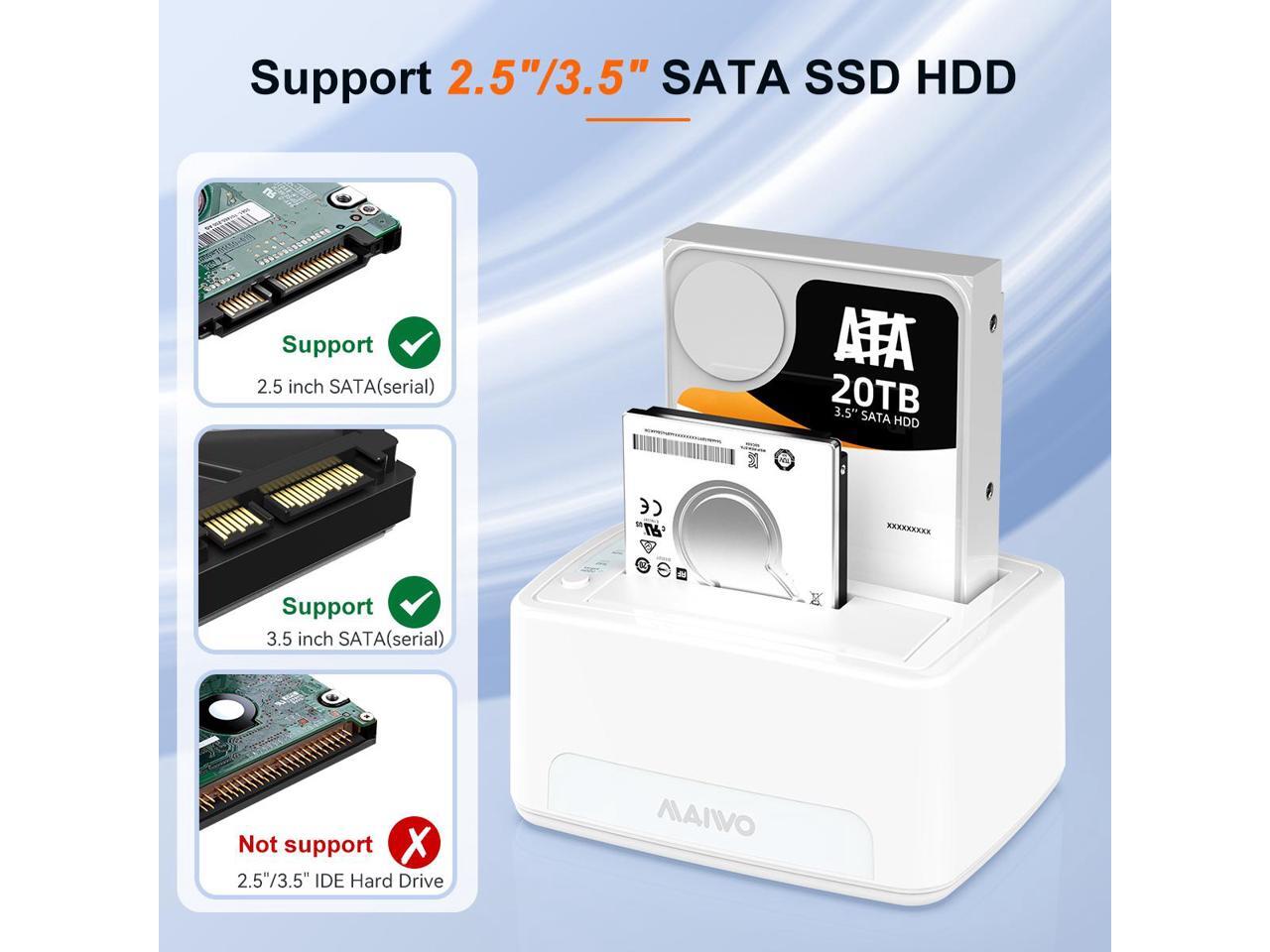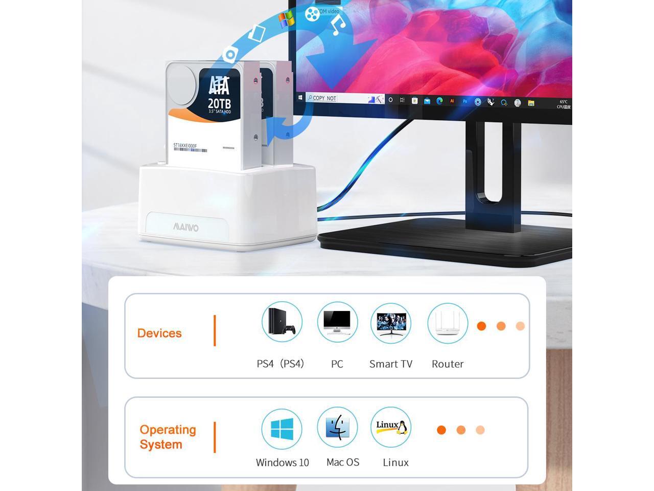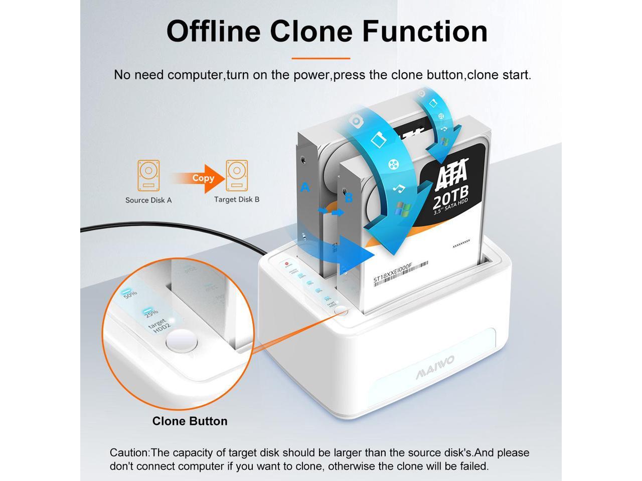 MAIWO Dual Bay Hard Drive Docking Station with Offline Clone, SATA Cloner Dock for 2.5 and 3.5 inch HDDs and SSDs, 40TB Expansion,UASP Supported,White