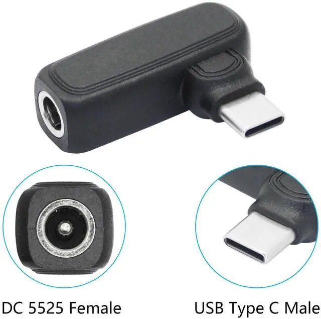 1Pcs 90 Degree DC 5.5mm x 2.5mm Female to USB C Male Plug Power Charging Adapter