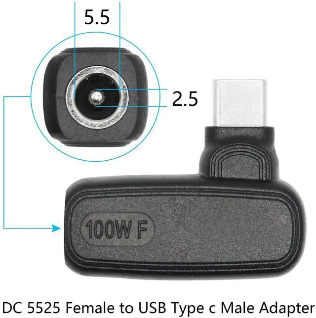 This is DC 5.5mm x 2.5mm to USB Type C power charging adapter, max power output 100W, DC input must be greater than the USB output.