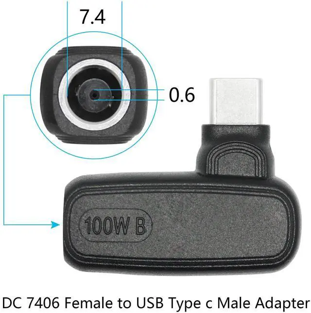 This is DC 7.4mm x 0.6mm to USB Type C power charging adapter, max power output 100W, DC input must be greater than the USB output.