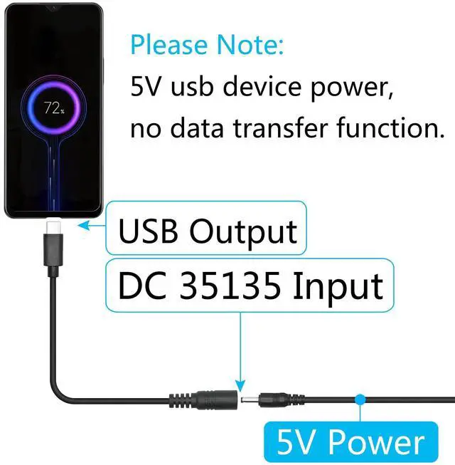 DC 3.5mm x 1.35mm to USB Type c power cord, easy to use