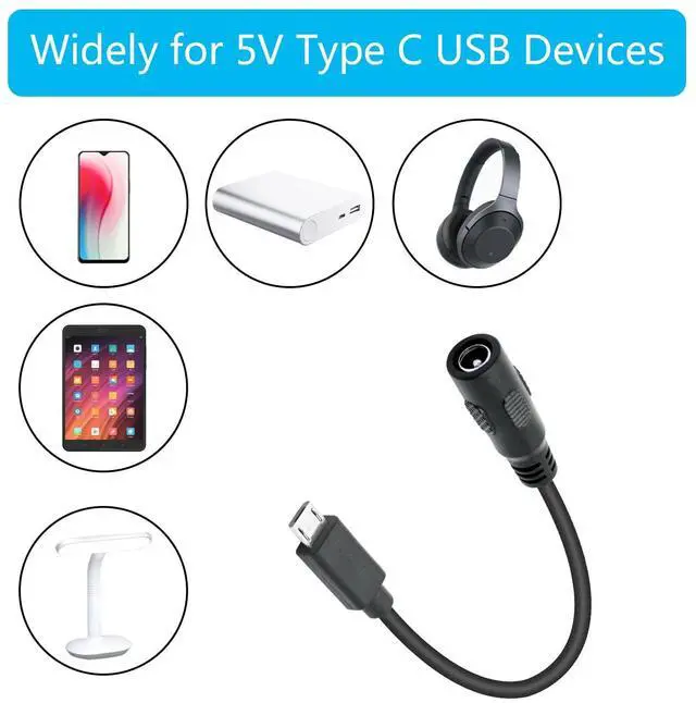 DC 5.5mm x 2.1mm to micro usb power cord, easy to use