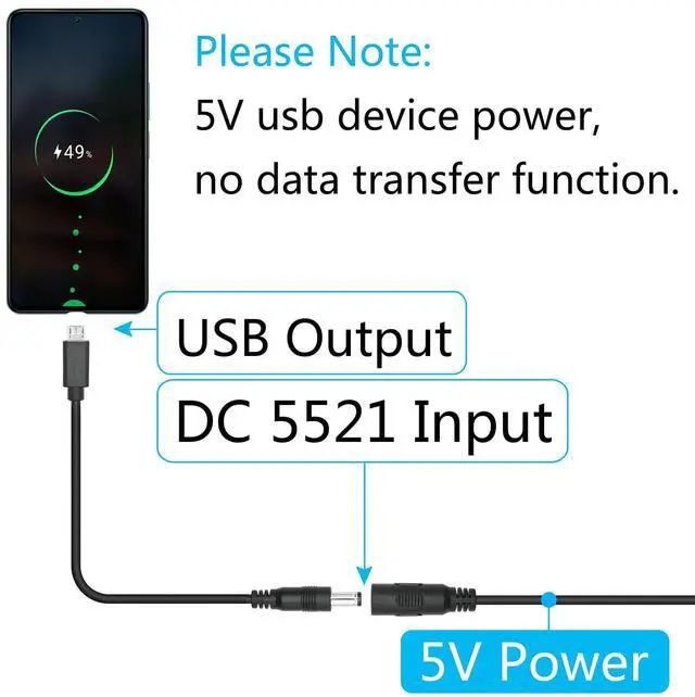 DC 5.5mm x 2.1mm to micro usb power cord, easy to use