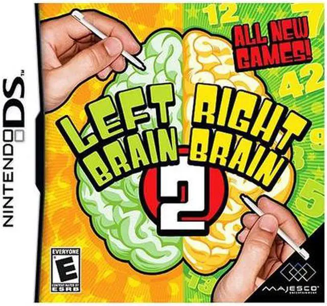 | Features | Are you a "righty" or a "lefty"? What if you could be both? With Left Brain Right Brain, you can hone your mental skills to become truly ambidextrous. While training your hands with speed based DS mini-games, you'll also be training the left and right hemispheres of your brain. It's like two games in one! Use the Touch Screen in 15 different mini-games based on speed, accuracy, association, recognition, memory and strategy. Games include: Connect the Dots, Pop the Balloons, Feel the Music, Hit the Monsters, Touch the Green Square, Save the World, Open the Safe, Trace the Shape, Navigate the Maze and many more. Book-style play has you flipping the DS over and around to develop your hand-eye coordination with both left and right hand. Master 4 single player game modes: Hand Exercises, Balance Check, Left Hand vs. Right Hand and Ambidexterity Check. Challenge a friend to 2-player mini-game tests via DS download play. Practice any activity, over 5 difficulty levels, to prepare for ambidexterity tests. Monitor personal progress and assess improvement with development percentages for each hand that appear after play. |