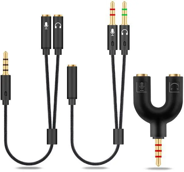 CTIA Standard Audio Splitter: Work with any headphone/mic setup that is base of a 3.5mm jack. Easy to Connect: No need to install other equipment, plug and play. Allows you to easily connect stereo headphones to both PC audio port and microphone port which is a great solution to share favorite audio or movies with your friends or families. Universal Compatibility: Perfect fix to convert desktop gaming headset compatible with new version laptops, new version xbox one, ps4, Nintendo Switch, mobile phone, tablet, etc. Super Sound Quality: 24K gold-plated connector transmit optimal stereo audio. Package Contains: 1x 3.5mm headset adapter, 1x 2x3.5mm female to 1x3.5mm male jack plug, 1x 2x3.5mm male to 1x3.5mm female jack plug. (3 In 1 Pack)